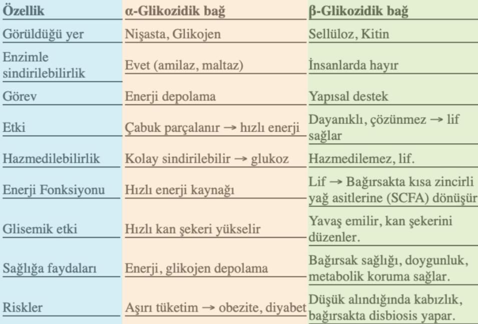 Kaynaklar: 1. Yıldız F. (2009). Advances in Food Biochemistry, “Glycobiology of Foods” CRC Press Publishing Companies (Francis and Taylor Group), 510 pages. New York, NY, USA. 2. Richard D Cummings. (2024). A Periodic Table of Monosaccharides, Glycobiology, Volume 34, Issue 1, January 2024, https://doi.org/10.1093/glycob/cwad088 3. Jens Bangsbo, Peter Krustrup, Jose ´Gonza´ Lez-Alonso ve Bengt Saltin. (2001). ATP production and efficiency of human skeletal muscle during intense exercise: effect of previous exercise. Am j physiol endocrinol metabolism vol: 280, pages e956–e964, The American Physiological Society http://www.ajpendo. orge956 4. Wei Tang, Dan Liu, Shao-Ping Nie. (2022). Food glycomics in food science: recent advances and future perspectives. Current Opinion in Food Science. Elsevier, Volume 46, August 2022, 100850. 5. Bin Zhang ve Sushi Dhital (Ed). (2025). Carbohydrate Nutrition ISBN 978-0-443-15700-4 DOI https://doi. org/10.1016/C2022-0-01619 Academic Press part of Elsevier Science and Technology. Elsevier B.V (Corporate office) Radarweg 29 1043 NX Amsterdam, Netherlands Tel: +31 20 485 3911.